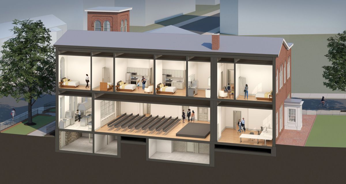 Mills + Schnoering Architects was engaged by the non-profit Town Clock Community Development Corporation (CDC) to assist in planning for the building’s future. Town Clock’s mission is to “provide permanent, affordable, safe housing and supportive services for survivors of domestic violence and their children.” M+Sa worked with Town Clock to explore the feasibility of converting the Church Education Building for residential use as part of their housing program, accommodating 4-6 apartments, community space, offices, and a teaching kitchen. The work proposed for the Church Education Building would complement the work that has already been completed within the adjoining Church and the Sexton’s House immediately to the west.