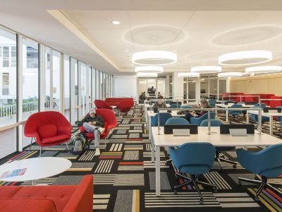 Hill College House, designed by Eero Saarinen in 1960, is one of eleven undergraduate residential houses serving the University of Pennsylvania’s undergraduate population. The six-story, 200,000 sf masonry building accommodates nearly 520 students as well as live-in faculty and graduate student staff, and features a full dining hall and kitchen and various other shared amenities. Because Hill College House is considered a significant architectural landmark on the University of Pennsylvania campus, a conservation approach that encompassed both the broad aesthetic principles put forward by Saarinen and the physical materials utilized in the original construction guided the project. Design choices were rooted in considerable study of Saarinen’s work, and supported by a larger understanding of the architectural context at mid-century.