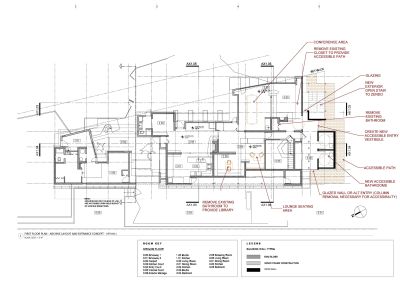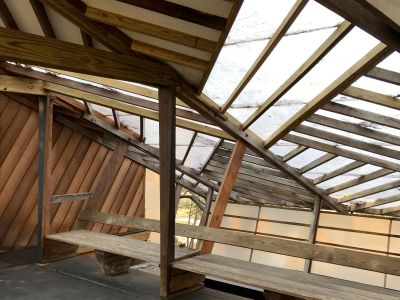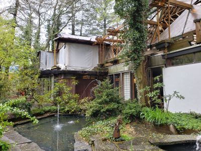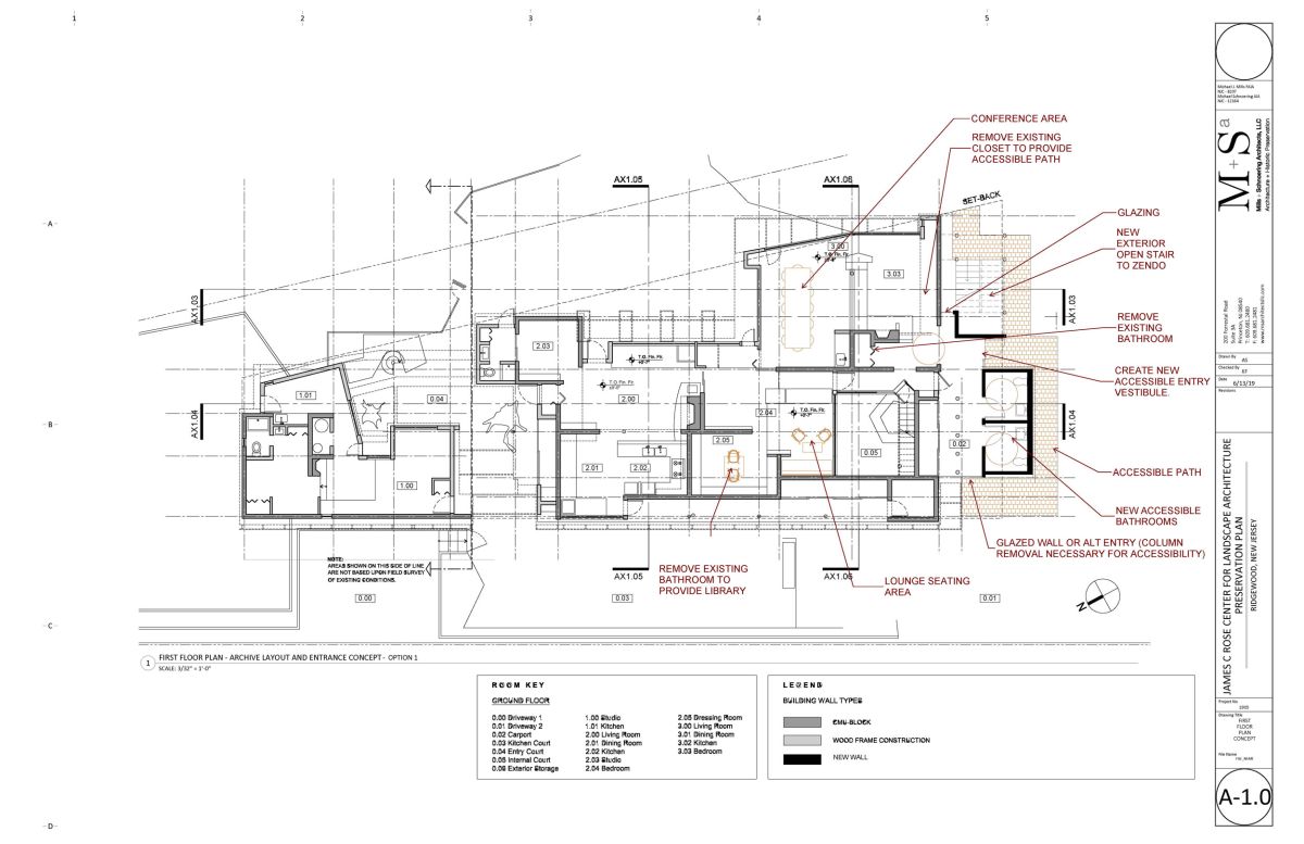 Mills + Schnoering Architects (M+Sa) was initially retained by the James Rose Center to prepare a Preservation Plan for the property. The goal was to design a program of restoration and rehabilitation that would allow the building and landscape to be preserved, while upgrading overall functionality of the site to meet existing and future requirements. Challenges include finding ways to expand and enhance the building and landscape in keeping with Rose’s very specific design philosophy and examining options for creating safe occupancy and barrier-free access. M+Sa has subsequently prepared design documents for the rehabilitation of the Zendo, which is particularly vulnerable given its location and has suffered considerable damage during several storms.