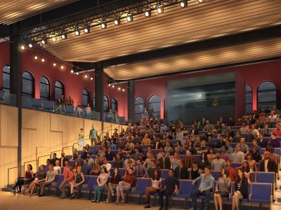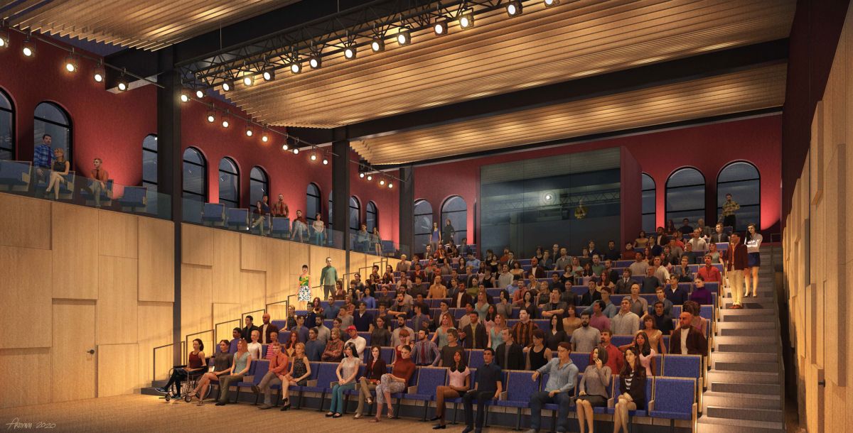 Patron amenities include new bar/concessions throughout; accessible features such as new elevators, seating, and restrooms; and a new donor lounge. The Theatre’s dressing room wing has been replanned and expanded to increase efficiency, performer amenities, and storage. A second 250-seat flexible film and performance space, The Bobby Stone Cinema, is being created within the Tivoli Center, and includes state of the art projection and lighting systems, and telescoping seating. Backstage performer spaces, multi-level lobbies, restrooms, and concession areas serve the new room. New office space for the Tivoli Theatre Foundation will consolidate and centralize the Tivoli’s administrative staff. Multi-purpose rooms intended for education activities and a new freight elevator serving all levels greatly expand Tivoli’s reach into the community. A new restaurant and rooftop lounge will further enliven the new arts center’s prominent location in the center of Chattanooga.